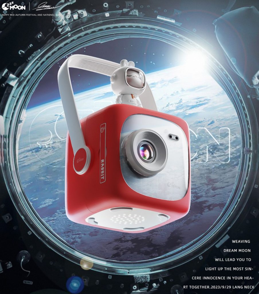 Featuring a square shape with striking red-and-white color blocking, it delivers strong visual impact. An astronaut ornament on the top adds a playful touch, appealing to young users and children.