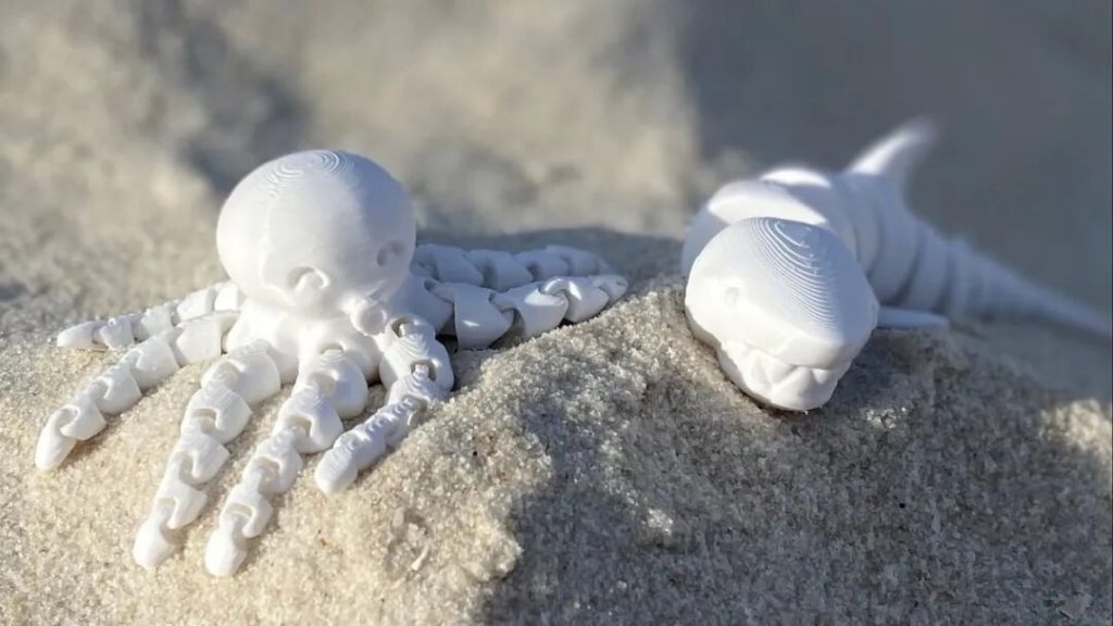 These flexible toys can be 3D printed in one piece using materials like PLA, PETG, and ABS. Sharks and octopuses have always been highly popular examples, and countless other flexible animal designs are available on platforms like Thingiverse.