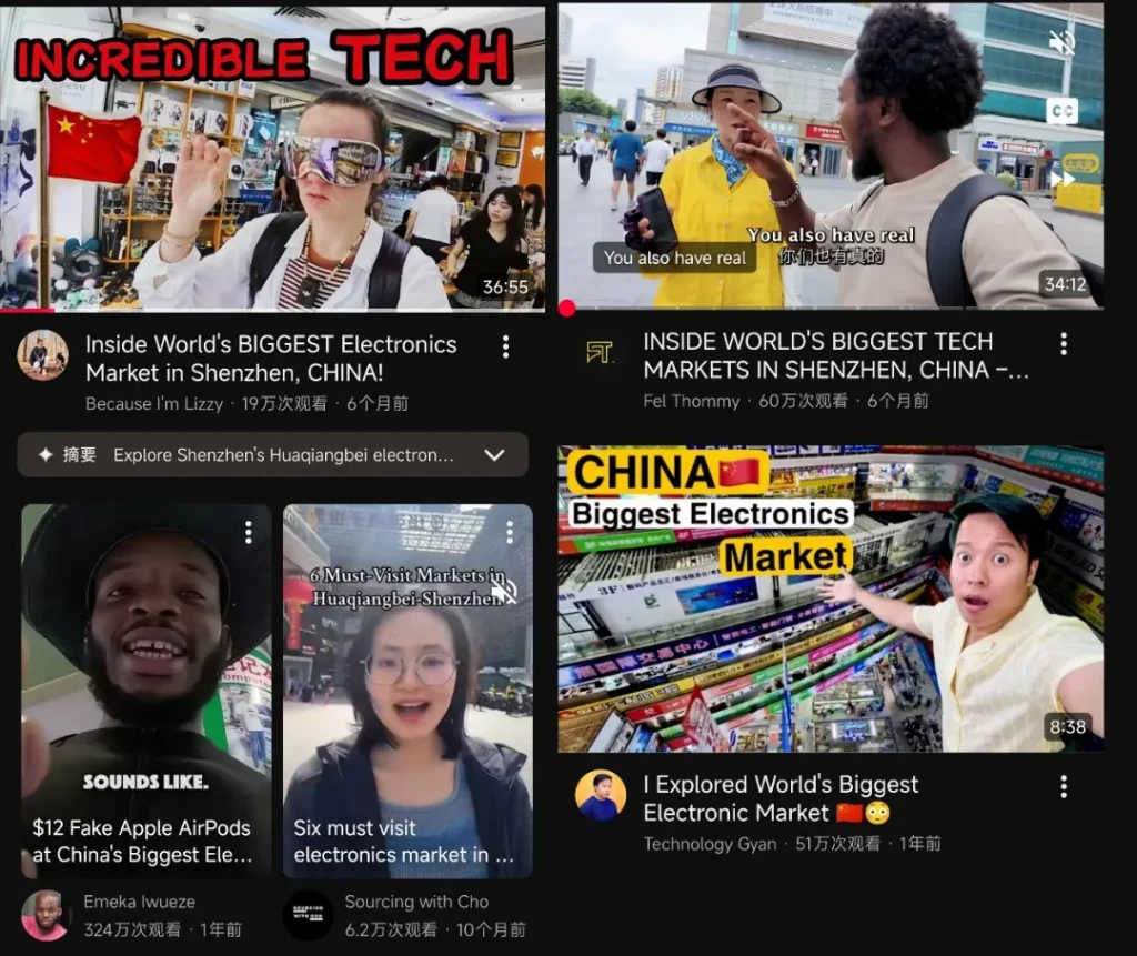 Foreign YouTubers’ Huaqiangbei-related content has achieved impressive view counts. Lizzy’s “Exploring Shenzhen’s Huaqiangbei Electronics Market” garnered 190,000 views, Fel Thommy’s related video reached 600,000 views, Technology Gyan’s clip earned 510,000 views, and Emeka Iwueze’s video “Buying Fake Apple AirPods in Huaqiangbei” amassed a staggering 3.24 million views. These videos—focusing on market scale or showcasing unique products—cater to overseas audiences’ curiosity about China’s electronics market through a curious lens, further boosting Huaqiangbei’s global reputation.