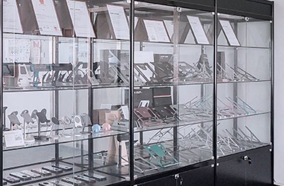 As soon as you step into the factory, you can feel the orderliness and professionalism of this established enterprise. In the standardized production workshop, CNC machines are running at full speed, shaping the precision structural components of metal stands with meticulous craftsmanship. The entire production process is streamlined and well-organized. The sample display cabinets are filled with a wide range of best-selling products, including phone stands, tablet stands, and laptop stands. There are also protective frames and cases compatible with various models of mobile phones and tablets. These products boast a premium metallic finish and trendy designs, delivering a tangible sense of quality the moment you pick them up.
